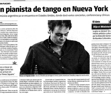 Confieso que he viajado" Adrián Placenti - Compositor y pianista de Tango. Estados Unidos. A todo tango en Nueva York"